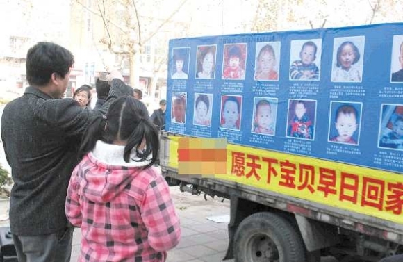 18日,11位丢失孩子的父母千里迢迢来到聊城,他们从郑州出发,开着两辆贴有儿童照片的车,走了10多天,去过几十个地方,只为寻找丢失的孩子。图为:聊城市民用手机拍照,记下丢失儿童的情况,以帮家长找孩子。