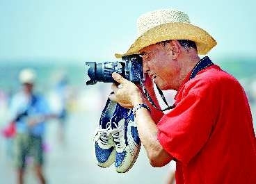 (王立群 摄)地点:青岛器材:松下LX2自述:一游人提着鞋站在海水中拍摄。点评:充满鞋(谐)趣。(拍客奖150元)