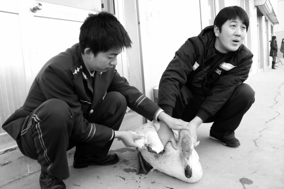 救助民警表示,山东荣成市俚岛镇烟墩角天鹅保护区海滩平缓,水温适宜,每年都能吸引上千只大天鹅从各处飞来过冬。有时,大天鹅飞行中会误撞受伤,遇到这种情况,居民应及时与有关部门联系,展开救助。