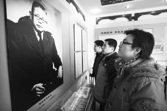 12月20日,傅斯年陈列馆举行纪念傅斯年先生逝世六十周年活动,市民纷纷来到陈列馆缅怀傅斯年。图为市民在傅斯年肖像前缅怀。