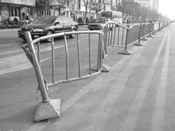本报聊城12月20日讯(见习记者 李璇)20日下午,柳园路兴华路路口附近,近50米机动车道中间缺少护栏,向南铺设的护栏北端有5米左右已经严重变形。附近市民说,护栏是被车撞变形的。