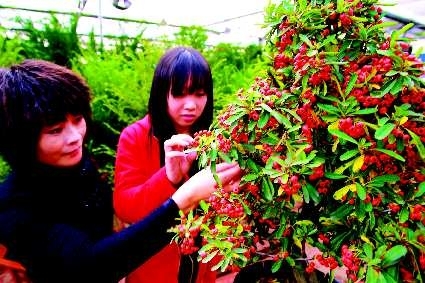 随着元旦的临近,一些市民选择色彩鲜艳、寓意吉祥的花卉来烘托节日气氛。据商家介绍,近期花卉销售量增加了数倍。图为20日,在鲁南花卉市场内,市民正在选购鲜花。
