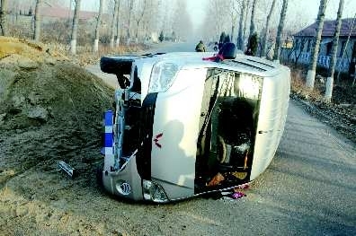 20日7点40分左右,费县上冶镇一村民驾驶面包车沿兴郝路行驶至曹车村路段时,因挡风玻璃上有雾,没注意到路边堆放的沙子,结果面包车侧翻,造成保险杠损坏,前车挡风玻璃和车门窗玻璃破碎,所幸未造成人员受伤。 通讯员 吴云富 记者 季善文 摄