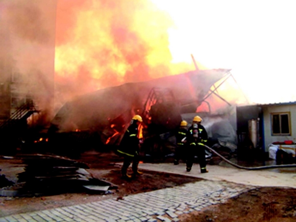 19日下午,烟台市胜利南路一工地突然起火,消防第八中队接到指挥中心命令后,迅速赶到展开灭火工作。但因火场附近消火栓都不好使,火场水源不充足,指挥员迅速向指挥中心请求增援。10分钟左右,增援力量特勤中队赶到,保证了火场水源充足。经过1个多小时的扑救,火势终于得到了有效控制。本报记者鞠平通讯员林彦萍 摄影报道