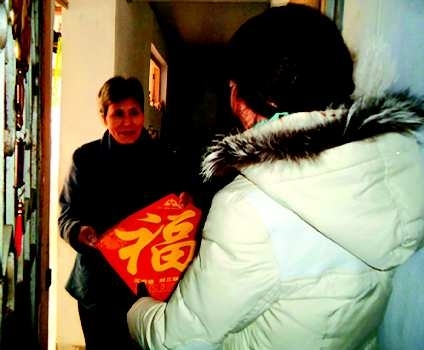 随着元旦临近,奇山街道长生社区居委会的工作人员连日来,将充满喜庆、吉祥的“福”字和财神日历送到辖区居民家中,在寒冷的冬天给居民送去一份温暖。本报记者刘新 通讯员刘丽华 摄