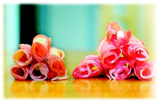 你能分辨出哪边是真羊肉,哪边是鸭肉做成的假羊肉吗?答:右边是真的。本报记者邱志强摄详见C05主打