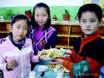 冬至、圣诞节、元旦″″年末岁首,中外节日齐聚,好吃的纷纷上桌o这些美食是怎么制作出来的呢?12月21日下午,山师附小三年级十二班的同学们在吕宁娟老师和四位家长义工的指导下,亲手制作了水果沙拉o自己做的沙拉,味道真是好极了!赵金华 摄