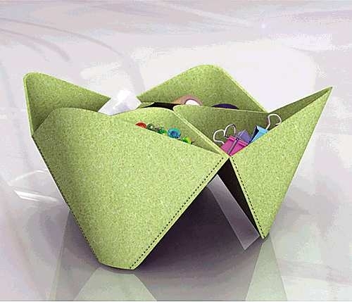 图中设计的这个“东南西北”,是两片羊毛毡缝合作为一个单元,四个单元拼合成型,可稳稳立在桌面上,装一些小玩意。粉嫩的色彩,令人回忆起童年的美好时刻,温馨,亲切。