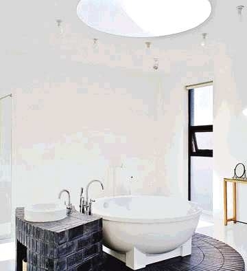 在我国有的地区传统民居中一进院门会有一个天井,下雨的时候四面的雨水顺着房檐流进这个天井中,正所谓肥水不流外人田。按此原理将阁楼设计成浴室,从顶部采光,四周追加一圈小灯,下面放上一个浴缸,整个设计将古朴与现完美结合。当然,屋顶的天窗还是不能漏雨的,只露阳光就好,同时上下水问题要提前预设。