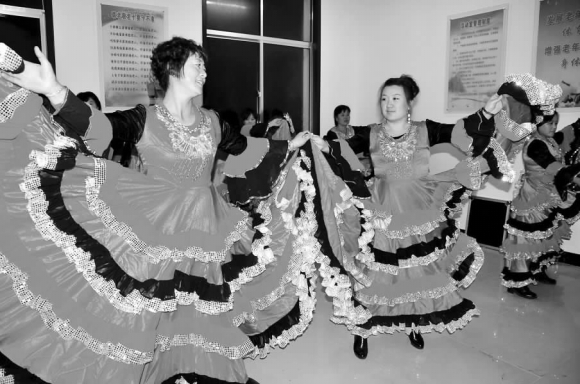 21日晚,乳山市白沙滩镇曹家庄村民正在排练春节联欢会节目。