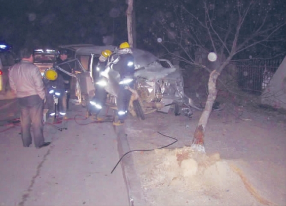 22日凌晨2时许,文登市开发区深圳东路发生一起车祸,一辆微型面包车将路旁一棵直径约30厘米的树撞倒,面包车驾驶室右前侧被撞得严重变形,车头深深向里凹陷,副驾驶位置的乘客被困车内,右腿被严重变形的车体卡住,难以动弹。文登消防大队官兵赶到后,用扩张器将变形的车体撑开,最终将伤者救出。