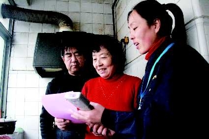 22日,在中学街附近一小区内,天然气抄表员顾云正在为一户居民讲解安全使用天燃气的相关知识,并为他们发放宣传材料。据了解,为了减少或避免冬季天然气事故的发生,港华燃气组织全体抄表员入户进行安全用气的宣传。