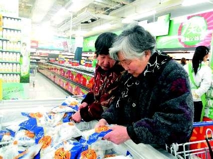 市民在超市选购速冻水饺。