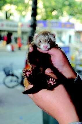 走进屋里,看到一排柜子里十几只毛色各异的宠物貂都在窝里或者吊床上睡觉,有的还在磨着牙。记者从笼子里取出一只熊猫色的小貂,抱着小貂感觉它的毛发非常柔软舒服,而且很粘人,从手上直接就匆匆地钻到怀里继而又乖乖地爬到肩膀上。让人觉得它好奇心重而且开朗,虽然一直在人身上爬来爬去但却不会掉下来,可能因为一直在笼子里睡觉,一放出来开心的不得了。非常喜欢与人玩耍。由于无止尽的好奇心和冒险精神,一刻都闲不下来,也常爬进家具后面或者沙发下面去探寻新事物,会纠集任何它喜欢的东西并藏在隐秘的地方,也会建立自己的活动势力范围,爱撒娇、爱玩又聪明,很容易与人亲近,常常要与她一起玩。店主方晶说,宠物貂尤其喜欢与人同进同出,所以可以和狗狗一样,为它套上吊带或放置于外出笼后再带它外出散步。她经常带着小貂出去,它就乖乖在帽子里睡觉,训练好的小貂一吹口哨或者打一个响指,就会立马爬到你肩头上,很乖又拉风!