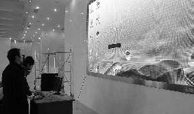 沿着回形走廊走一圈,来到大厅电子屏幕前。这位负责人指着屏幕前的区域说,这里将是一个休息区。