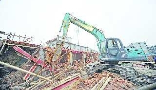 23日早6点左右,—片在建的违章建筑被拆除o 本报记者 王媛 摄
