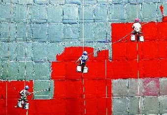 作品描述:东营胜利发电厂大修期间,工人师傅在对电厂冷却塔内壁进行防腐处理。