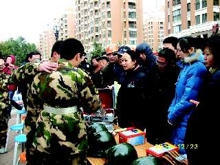 “发生火灾莫慌张,赶快逃生第一桩;瞧准通道看出口,高层就沿楼梯走……”在“2010年上海滩花园冬季消防演习”的现场,莱山消防大队官兵一边给市民讲解“火场逃生自救要诀”、灭火器和高层救生缓降器的使用,一边给市民发放宣传资料。