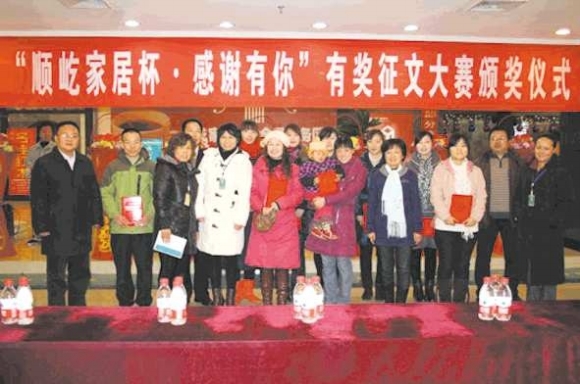 12月19日首届“顺屹家居杯·感谢有你”有奖征文大赛颁奖仪式在顺屹家居举行,大赛奖项各归其主。