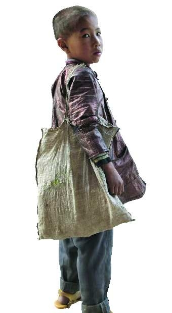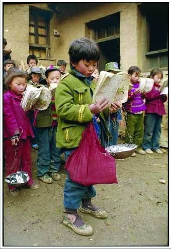 这一组照片由中国孔子基金会提供,是一些网友拍摄的贫困山区孩子的上学照片,他们的书包或者是塑料袋,或者是破布袋,或者是洗衣粉袋,看了不禁让人心酸。一个新书包对他们来说,都是奢求。