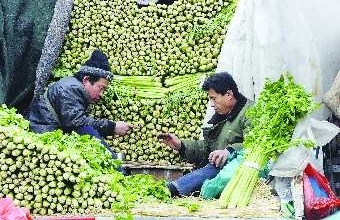 12月29日,七里堡蔬菜批发市场,两位菜贩在下棋。据介绍,去年芹菜每斤1.2元,而今年只卖到五六毛钱。便宜不好卖,这两位闲来无事索性坐下来杀上一盘。 本报记者 王媛 摄