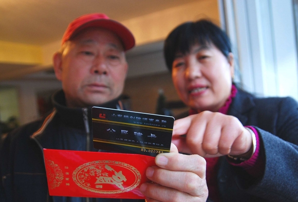 为给社区居民提供全方位的法律服务,29日,泰前街道办事处国华社区联系某律师事务所,为居民免费发放了价值600元的公民律卡,方便居民进行各种法律问题的咨询。图为国华社区工作人员为社区居民都希明(左)介绍公民律卡的使用方法。