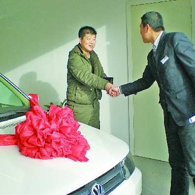 来自庆云县的李亚涛从4S店工作人员手中接过自己等待已久的新车。 本报记者 李继远 摄