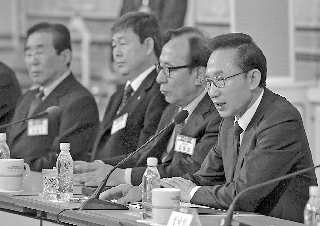 李明博29日在听取外交通商部和统一部的工作报告。