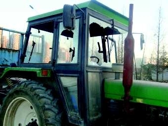 “当时,该拖拉机经过我们设立的查车点时,我们示意其停车,而司机没有停车,我们一名协警便跳到车的一侧制止,不料车主继续前行,情况十分危险,后来在争执中将其车窗砸碎。”刘队长说,事后司机拒不出示证件,他们便无法开出扣车单,只能强行将其车送到停车场。