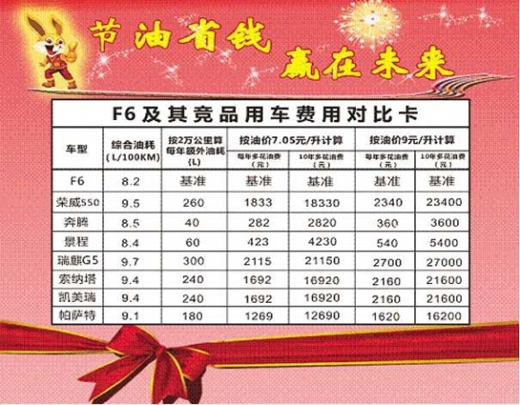 同时,F?拥有5年10万公里的超长保修。据李先生处介绍,为了保养好自己的爱车,他每年都更换一次刹车油,每5000公里就要做一次全面保养,而且还是在正规的4S店进行保养。李先生算了一下他的用车成本:以一年2万公里计算,首保提供免费服务;第二次常规保养费用约为190元;第三次更换机油、三芯、清洗节气门进气系统等约为350元;第四次保养(更换机油机