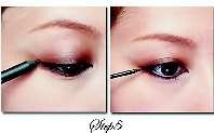 小编Tips:想令眼妆更自然,可以打亮眼窝中央眼球处,这能帮助各种渐变色眼影的融合。Step5:画上动人眼线