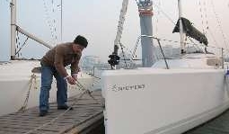 12月21日,在日照世帆基地见到王桂师时,他正在码头上加固帆船。“听说要来大风了,我来看看帆船。”王桂师说,帆船现在就是他生命中的一部分,每天不来看看,就想得慌。 据王桂师介绍,为了顺应帆船运动在日照的发展,世帆基地服务中心于2008年成立了尤尼克帆船俱乐部,这是当时日照市第一家帆船俱乐部。在去年俱乐部正式开展了业务,从事帆船培训、组织参加业余比赛和组织体验活动。 目前,日照市已经有3家帆船俱乐部,主要集中在世帆基地内。“和其他俱乐部不同的是,我们隶属于世帆基地,更多的业务是开展全民培训。”王桂师告诉记者,现在俱乐部有4条开展体验活动的帆船和6条比赛船,全部用来向日照市民和广大游客普及帆船运动。 “我们俱乐部一年能接待体验游客2千余人次、培训3百余人。”王桂师说,他有个心愿,他想一直和水上运动打交道,通过体验和培训,带动更多的日照市民关注水上运动,让他们参与到水上运动中来。