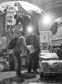12月30日凌晨4点,天还未亮,街面上车辆稀疏,寒风刺骨,记者不由得裹了下羽绒服,赶往目的地德州市黑马农贸市场,准备体验一下蔬菜装卸工的辛苦。 农贸市场内灯火通明,人声鼎沸。农用三轮车很多,车上装着刚批来的蔬菜。菜商们29日晚将菜运到市场后,就睡在驾驶室里,30日凌晨一两点就开始忙活了。一袋菜几十斤,全靠两个肩膀扛。身体早已被冷风吹得冰凉,汗水却又一次次渗出来湿透衣服。记者体验后发现,没有强壮的身体和肯吃苦的毅力,这活儿还真干不来。