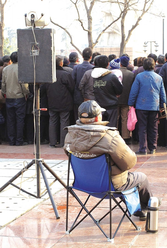 自述:戏迷们把戏台围得水泄不通,一位老戏迷淡定地坐在喇叭下听戏。