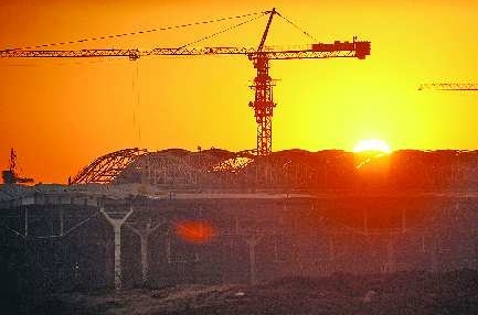 1月1日7时40分左右,新年的第一缕阳光照耀在京沪高铁济南西客站的工地上,映衬出施工人员的身影和西客站的雄姿。为了保障工程的按时完工,中铁十局、中铁十二局的施工人员放弃了节假日,在寒风中奋战在施工一线。 本报记者 左庆 摄