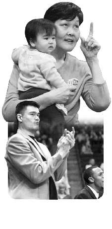 上图为姚明母亲方凤娣抱着孙女在看台上。