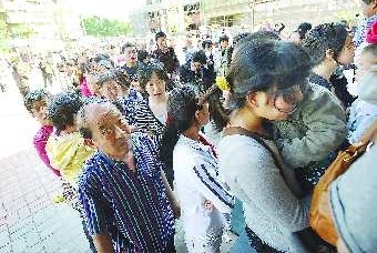 2010年5月6日,济南市槐荫区实验幼儿园开始招生,180个名额,约500人报名。许多家长凌晨一两点就开始排队,临近中午,一些家长仍在等待。幼儿教育普遍存在公办园“稀缺化”、民办园“两极化”、优质资源“特权化”、收费“贵族化”等问题。尽快解决入园难、入园贵问题,已成为众多家长的呼声。 本报记者 陈文进 摄