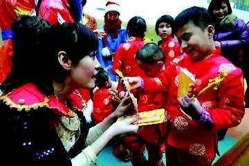 2日下午,在潍坊市儿童福利院,山东话剧院亲子剧团的演员们为孩子送去了元旦礼物。为了能让福利院里的孩子过一个精彩的元旦假期,话剧团的“白雪公主”和七个“小矮人”带着礼物和热心市民一起来到福利院,不但为孩子送来了节日礼物,还带来了精彩的节目。