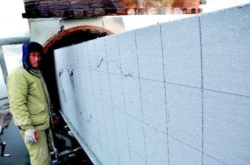 3日,在寿光宏安墙体材料有限公司生产车间内,工人正在托运刚刚走出蒸压加气仓的混凝土砌块。据了解,这种新型的砌块主要取材于发电厂废弃的煤灰,经过多个环节的加工,最后变成“绿色建材”。目前寿光共有五家这样“绿色车间”,变废为宝大大降低了煤灰对土地的污染。