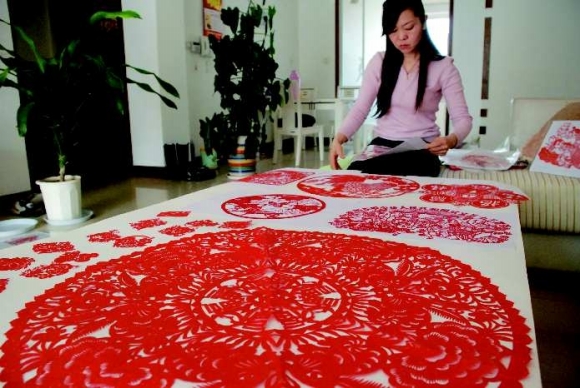 1月3日,家住安泰北区的王红娟剪出一幅直径68厘米的福兔,喜迎兔年的到来。王红娟说:“这幅剪纸中间有八个福字,还有八只福兔环绕,希望兔年更红火。”本报记者郑美芹 摄影报道