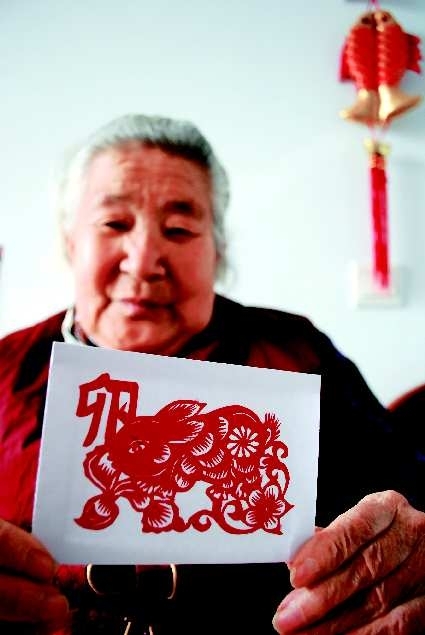 1月3日,东营区辛店敬老院,89岁的老人于从荣向记者展示一张刚刚剪好的剪纸,寓意虎兔交替,年年吉祥。农历新年临近,剪纸成为市民用来庆祝新年的一种时兴方式。