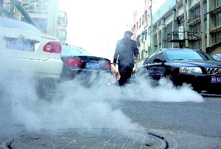 1月3日,向阳街中段,白色的热汽从井盖边缘冒出,影响了过往车辆司机和路人的视线。旁边饭店的工作人员说:“可能是供暖管道从下水道边经过,下水道的水汽被加热后冒了出来,从供暖开始后就一直这样了,冷天白汽就更明显,前两天还因为影响了司机视线,出了次车祸呢!” 本报见习记者 段学虎 摄影报道