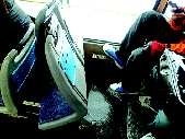 2日上午9时左右,记者乘坐23路车时看到这么一幕:司机在行驶中转弯时,坐在后排的两个小伙的身体向前一倾,只听“啪嗒”一声,前排的两个座位“躺”倒了。司机表示将尽快修理。 实习生 王红平摄
