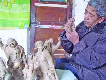 布满老茧的苍老双手,拿起一个10厘米左右长的小木刀,在一块泥巴上灵活地转动。随着手指不同角度的变换,泥巴上人物图像的线条渐渐清晰。半个小时后,用泥巴雕刻的人物图像活灵活现地展现在记者面前。这位就是身怀绝技的艺人———仙莹街道菜市社区的唐庆河,用自己的双手雕刻出一尊尊惟妙惟肖的人物泥塑。 观音送子像、弥勒佛像……3日上午,记者在唐庆河家里看到,他的泥塑作品用报纸一层层包好,分类装在箱子里,放在书柜的上面,有100多件。唐庆河小心翼翼地把泥塑从箱子里拿出来,用手擦了擦上面的浮尘说,做过的泥塑不计其数,很多都送人了,现在就留下自己感觉比较满意的作品,有时会拿出来独自欣赏。 “原料的好坏决定作品的质量,用来雕刻的泥土很有讲究。”唐庆河告诉记者,泥土得用水浸泡,泡的时间越长越好。他用的泥土都是从鱼台拉来的焦泥,根据多年的经验,泥土在水里浸泡3年以上,做出的工艺才更精细。泥土在水里泡过后,经过筛选、去除杂质,然后按一定比例用胶配制原料,通过清染、挂光等过程制成半成品,才可以用木刀在上面雕刻。朋友称赞他的作品“入水而不湿,落地而不碎”。 今年57岁的唐庆河是一名普通工人,业余时间做泥塑工艺已经有40多年了。在他十岁左右的时候,看着一位外地人到村里卖泥塑小人,做的很精致,他很喜欢但没钱买。之后就自己从河沟里挖泥巴捏各种各样的动物、人物造型。“那时用手捏,一点也不像,但就是很喜欢。”唐庆河说,从那时起就一直做泥塑,开始先在纸上画人物素描,时间长了就熟记于心,现在坐在他面前的一个人物,半小时左右就可以把人物头像雕刻出来。 唐庆河说,现在喜欢这种工艺的人越来越少,手工泥塑毕竟是传统工艺,希望这种工艺能传承下去。