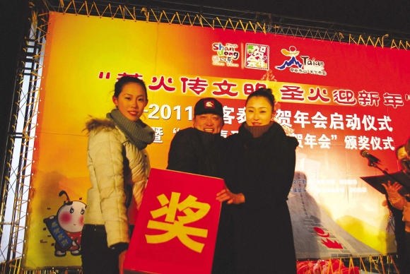 本报泰安1月3日讯(记者李虎 曹剑)2010年12月31日晚上,在凛冽的寒风中,“以薪火传文明,圣火迎新年”为主题的“好客泰安贺年会"启动仪式在山东服装学院举行。2011名大学生守望薪火,寄语新年。