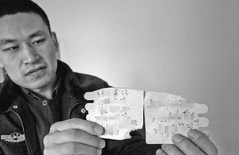 民警展示犯罪嫌疑人记录受害人基本信息的两张纸片。 本报记者 黄广华 摄