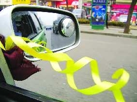 出租车系上黄丝带,为英雄送别,为伤者祈福。本报记者 陈琳 摄