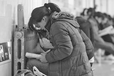 5日,在潍坊学院图书馆内,不少学生靠在走廊的暖气片上学习。由于临近研究生考试和期末考试,图书馆内座位有限,很多没有座位的学生只能在走廊里学习,走廊里的暖气片也就成了学习的好地方。 本报记者 孙国祥 摄影报道