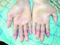 本报1月5日讯(见习记者 李钢 通讯员 邱少波) 小伙小江在操作机器时不慎被折板机挤伤双手,7根手指被挤不完全离断。经过12个小时的手术,7根手指完成再植。5日,记者从济南市第三人民医院了解到,目前小江再植的7根手指已全部成活。 去年12月10日,在济南一家小型加工厂工作的小江在做工时不慎被折板机挤伤双手,瞬间双手血流不止,手指畸形。“当时自己都蒙了!”回想起被挤伤的一幕,小江至今仍心有余悸。 工友们看到事故发生后,立即护送小江赶到了济南市第三人民医院。“当时来的时候,他多个手指离断,血管、肌腱露在外面,断指离开人体也有几个小时,已经苍白,上面还沾满了油污。”手外科医生赵风林回忆说,经过X光检查,显示小江双手食指、中指、无名指和右手小指共七个指头不完全离断,还有多处皮肤软组织挫伤。 情况紧急,为保证断指能够再植成功,医院决定立即实施手术。但是由于手指血管和神经特别纤细,接近于头发丝,所以需要高超的显微外科技术才能完成。“即便是最细的血管,至少也要缝上8针。如果没有显微镜,再植是无法想象的。”参加了再植手术的王文德医生说。为了争取时间,手外科医生分两组,同时对小江的左、右手实施再植手术。经过12个小时的“穿针引线”,两组先后完成了断指再植手术,而且所有再植的手指吻合血管一次通血成功。“经过治疗,目前患者已经康复,即将出院。” 针对类似的外伤事故,赵风林医生提醒市民,一旦发生,不要慌乱。首先务必将伤口用干净的毛巾包敷好,并携带断指(切勿将断指浸泡于任何液体中)尽快地送到有条件进行再植手术的医院治疗,手指未完全离断时,可用夹板固定并及时到正规医院就诊。