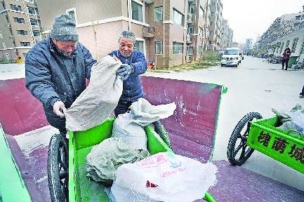 5日,装修工人将装修垃圾放在专用垃圾箱内。当日,槐荫区城管局在槐花园小区首家安放装修垃圾专用箱,彻底杜绝装修垃圾造成的二次污染。今后,装修垃圾专用箱将在新建小区内逐步推广。记者 张中 通讯员 李玲 摄